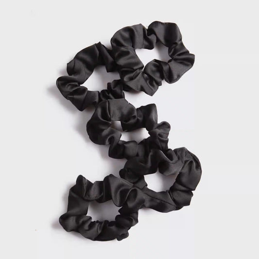 Minimalist Black Satin Hair Scrunchie, Set of 5