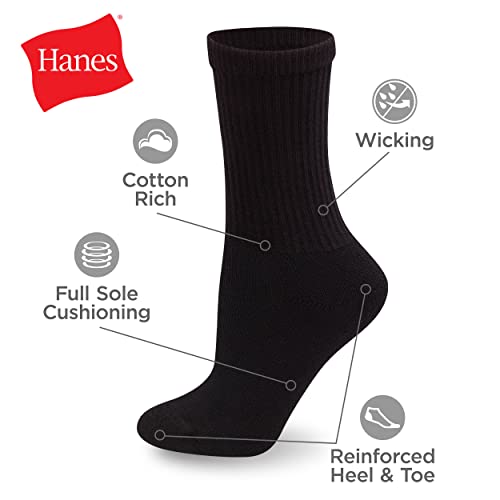 Minimalist Black Hanes Women's Crew Sock, Pack of 10 Dress Casual Socks, Black, 9 11 US