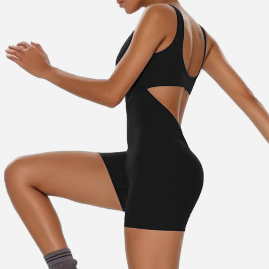 Minimalist Black Women's Sleeveless, Backless, V-Back Jumpsuit, Bodysuit, Romper