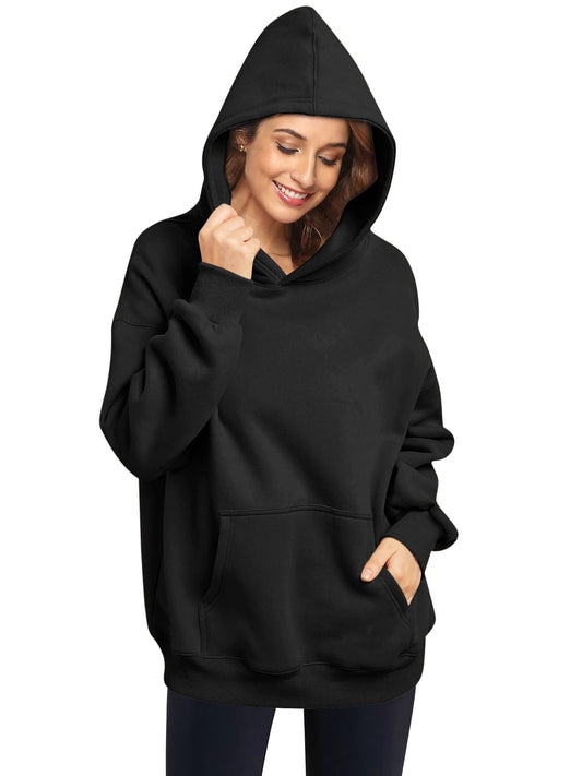 Minimalist Black Oversized, Fleece Lined Women's Sweatshirt, Hoodie w/Pockets