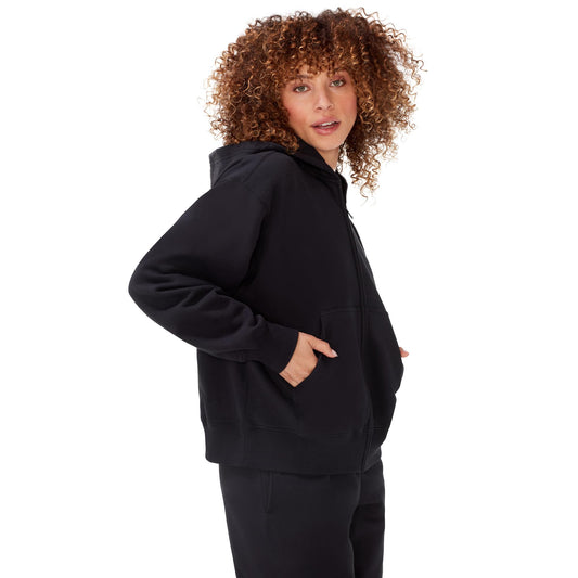 Minimalist Black Oversized, Boyfriend Fit Women's Fleece Zip Hoodie
