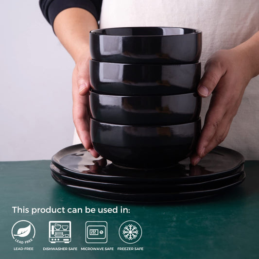 Minimalist Black Dinnerware Set, Service for 4