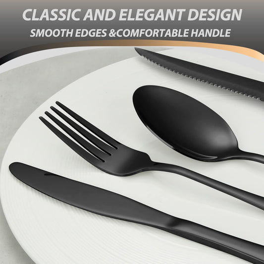 Minimalist Black 48-Piece Silverware Set with 8 Steak Knives