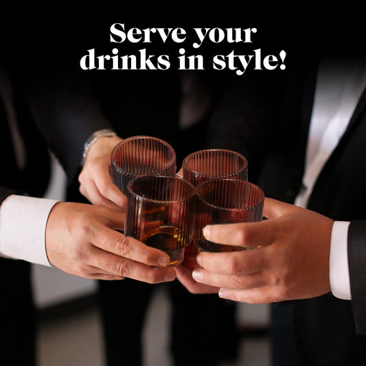 Minimalist Black American Atelier Vintage Art Deco Fluted 12oz Drinking Glasses, Set of 4