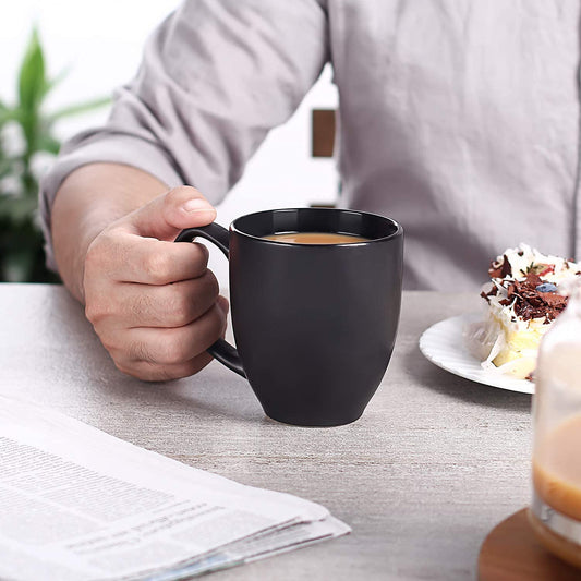 Minimalist Black 16 oz Coffee Mug Set, Set of 6 - Matte Black Design