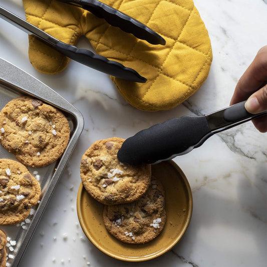 Minimalist Black Stainless Steel Silicone Tipped Tongs Set, 10”, 13”