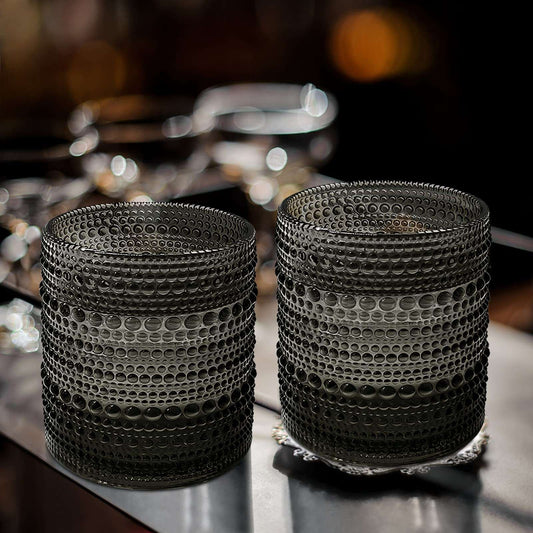 Minimalist Black American Atelier Vintage Art Deco Fluted 11oz Drinking Glasses, Set of 4