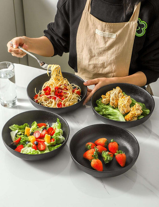 Minimalist Black Ceramic Plate Bowls, 40 oz, Set of 4