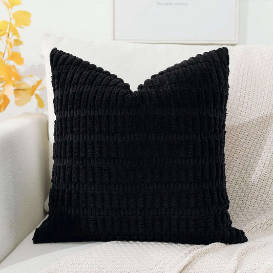 Minimalist Black Corduroy Throw Pillow Covers 20"x20"