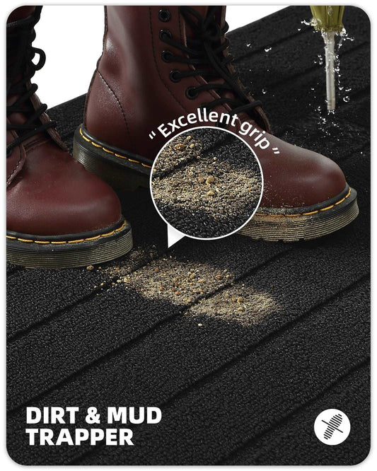 Minimalist Black Low Profile Geometric Floor Mat, Multiple Size Options