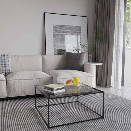 Minimalist Black Modern Glass Coffee Table, 26.7" x 26.7" x 15.7"