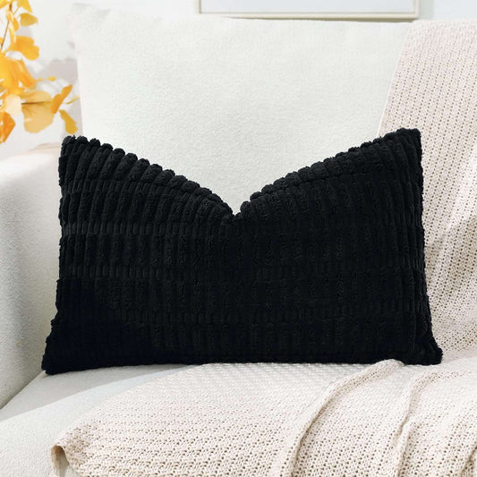 Minimalist Black Corduroy Throw Pillow Covers 16" x 24"