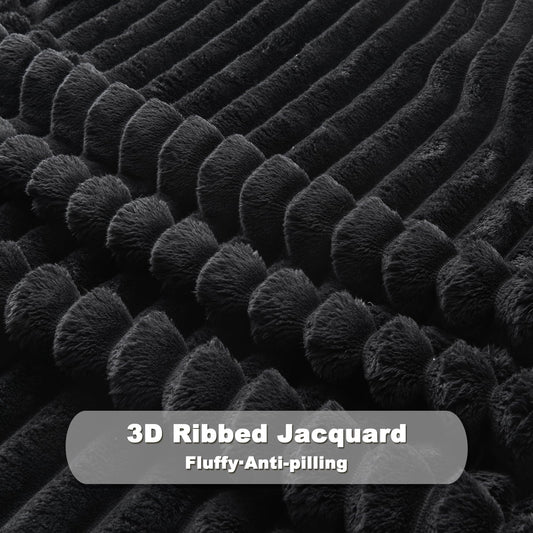 Minimalist Black Premium Ribbed Fleece Throw, King Size, 90"x110"
