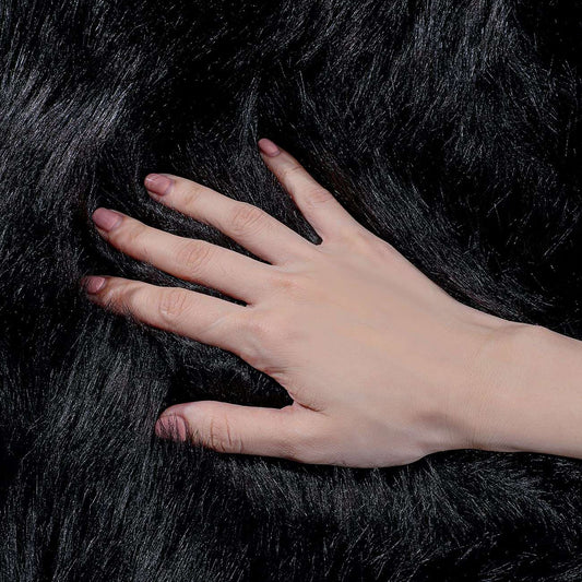 Minimalist Black Fluffy Faux Sheepskin Rug, 6'x9'