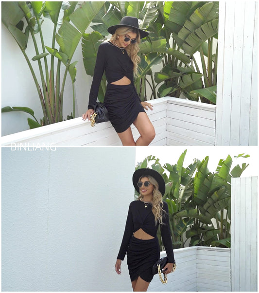 Minimalist Black Bodycon Twist Knot Cutout Mini Dress