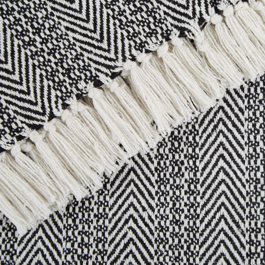 Minimalist Black/White Cotton Stripe Blanket Throw, 50 x 60"