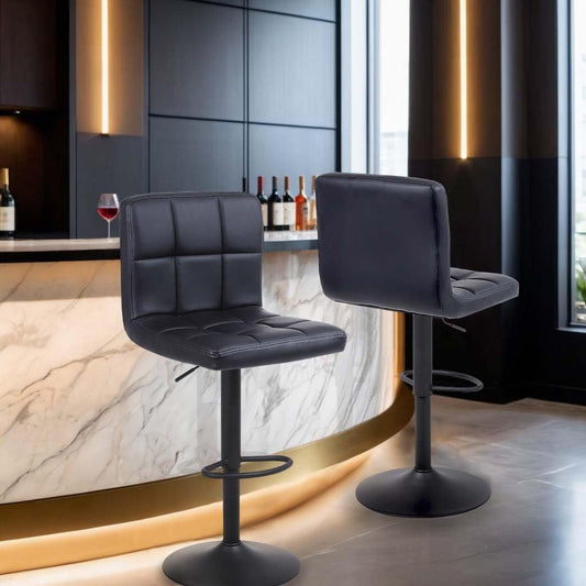 Minimalst Black LENNOX Furniture 360-Degree Swivel Adjustable Height Bounded Leather Bar Stools, Set of 2