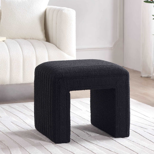 Minimalist Black Boucle Modern Stool, Ottoman for Bedroom, Living Room, Office, Entry