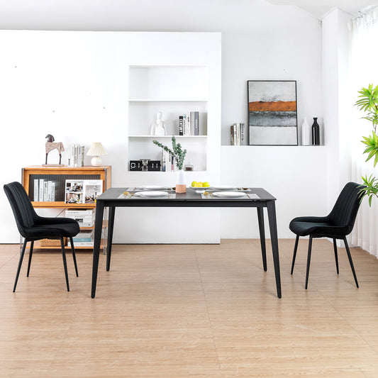 Minimalist Black Velvet Upholstered Chairs, Set of 2